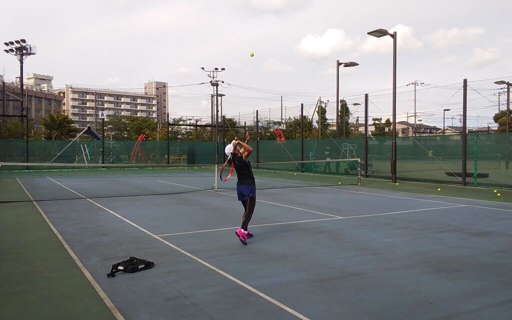 サービスラインからできるだけゆっくりサービスを打ちます。