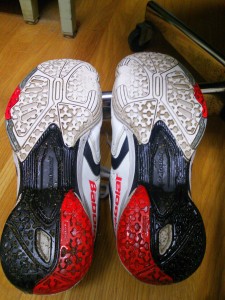 では下の写真の最近まで履いていたシューズと見比べてみましょう。(③・④・⑤)