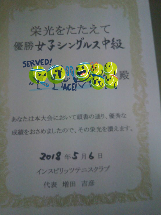 さらに、2日後の草トーナメントで優勝したとの報告がありました!