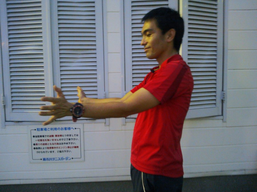 肘の位置は身体(肩・胸)に対して前になるようにします。