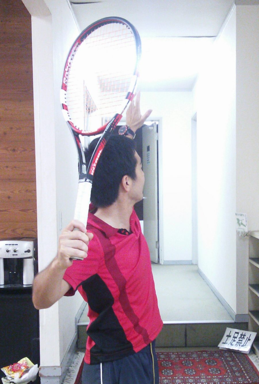 ・ラケットは頭上のあたり